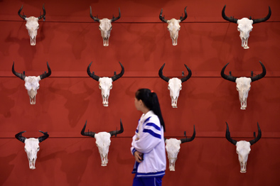 ▲2017年12月28日,观众在广州艺术博物院观看“牦牛走进羊城——西藏牦牛文化展”展品。新华社记者梁旭摄