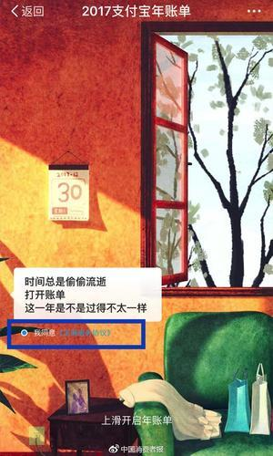 有用户告诉记者:“在查看年度账单时,曾看到过这行小字,但字太小,实在懒得去看。”也有用户称:“根本就没注意到这行字,当时只顾着查结果赶紧晒朋友圈,脑子热得不行。”上述争议爆出后,有用户感觉后怕,但回览时发现,只要打开过账单,这行小字就不再显示。同意了协议,个人信息还能否得到有效保护,引发用户担忧。