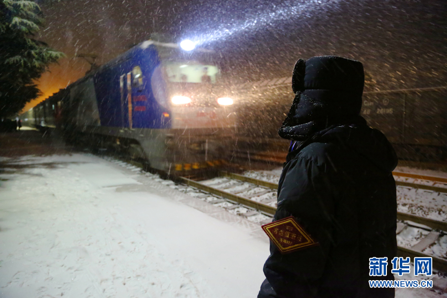 1月3日,洛阳渑池车站客运值班员马火军正在站台上立岗接车。(郑州铁路局供图,新华网发)