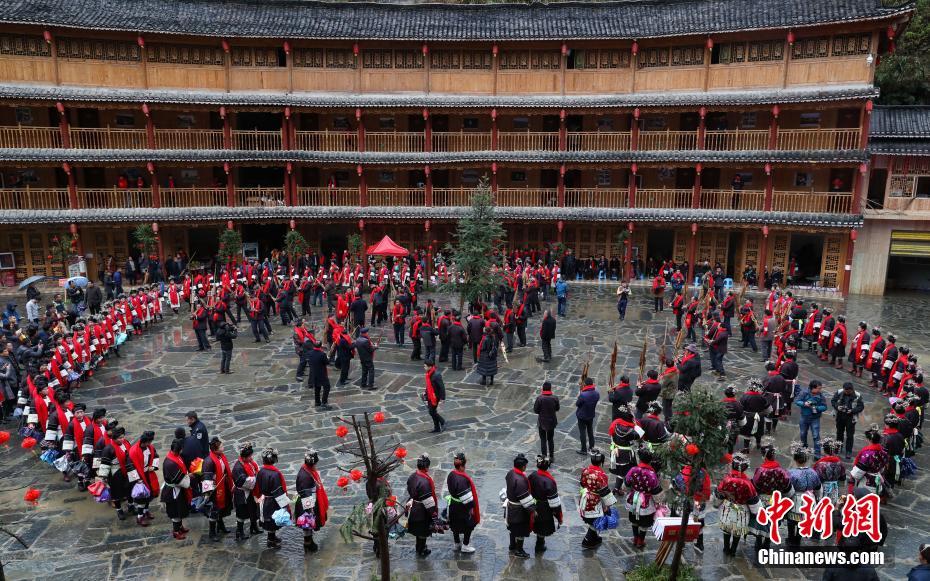1月4日,贵州省榕江县乐里七十二侗寨侗族民众欢庆侗族新年。侗年,侗语称凝甘,又称冬节或杨节,侗族同胞古训认为在一切农耕事务完毕的秋收后,是新的一年到来之际,因此,把农历十一月当作新春的岁首。侗年是侗族最为隆重的传统节日,2011年被列入国家级非物质文化遗产名录。中新社记者 贺俊怡 摄