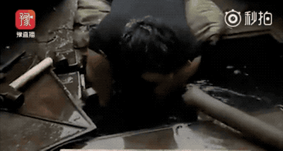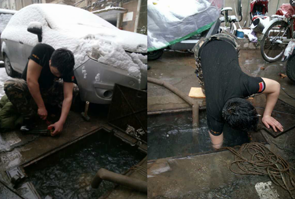 自来水工张威甩掉外套冒着风雪抢修