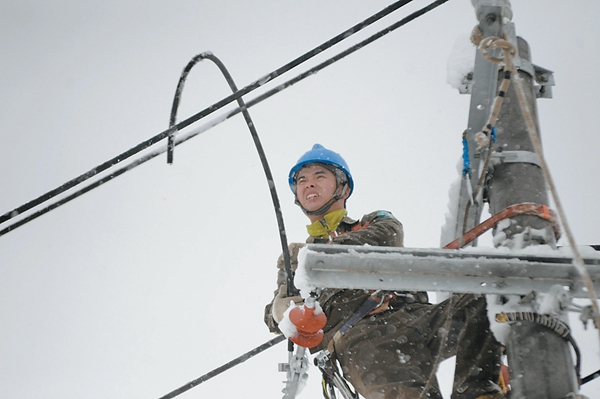 在风雪中巡检维修设备