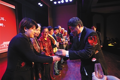 昨日(6日),故宫博物院院长单霁翔在给服务1000小时以上的故宫志愿者颁奖。新京报记者 浦峰 摄
