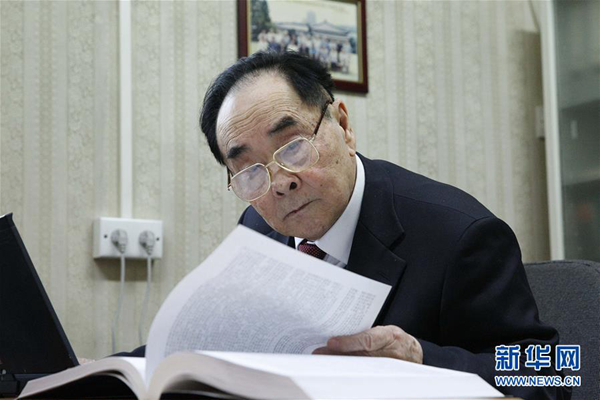 侯云德院士在办公室查阅资料(2017年12月27日摄)。新华社记者 张玉薇 摄