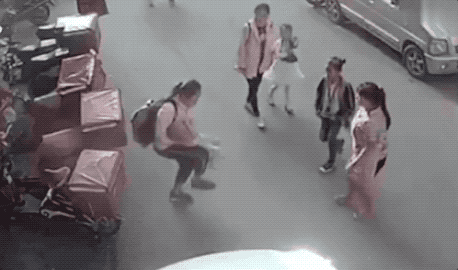 而这个小女孩,在面对楼上掉下来的孩子时,立刻冲上前,勇敢地伸出双手……