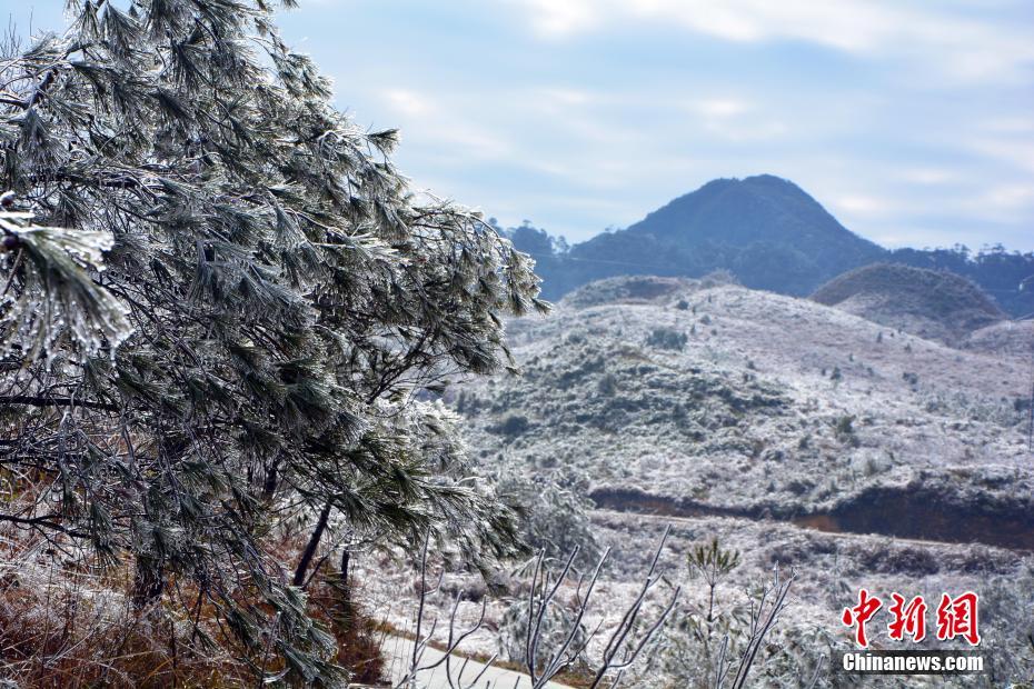 1月9日,拍摄于广西金秀大瑶山的雾凇美景。当天,受高空槽和地面强冷空气影响,广西金秀瑶族自治县部分高寒山区出现“千崖冰玉里,万峰水晶中”的壮美雾凇景象。这是该县入冬以来的第一场雾凇冰挂景观,引来不少游客前来观赏南方难得的冬日美景。金秀大瑶山位于广西中部偏东,群山连绵,峰峦叠嶂,溪水潺潺,古树参天,气势雄伟。中新社发 陈海清 摄