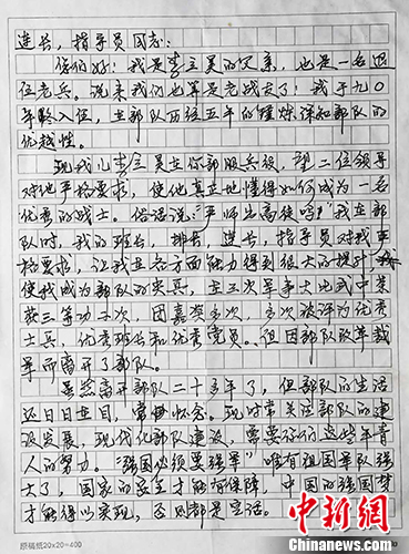 退伍老兵给儿子连队连长、指导员的家书。