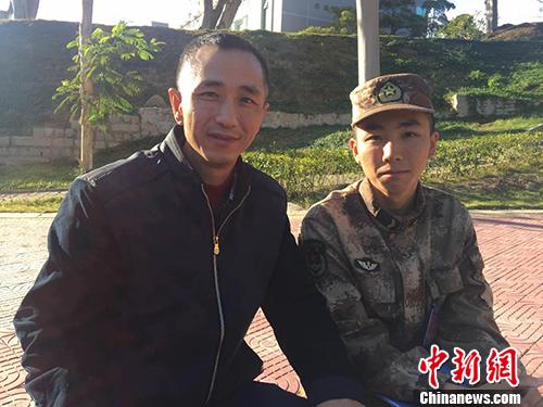 身着军装的李立昊和他的父亲李有志。 王佳昕 摄