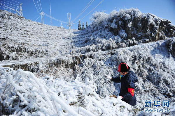 南方电网贵州公司启动256套覆冰在线预警终端对覆冰情况进行实时观测,出动观冰人员1000余人次,融除冰人员近200人次。