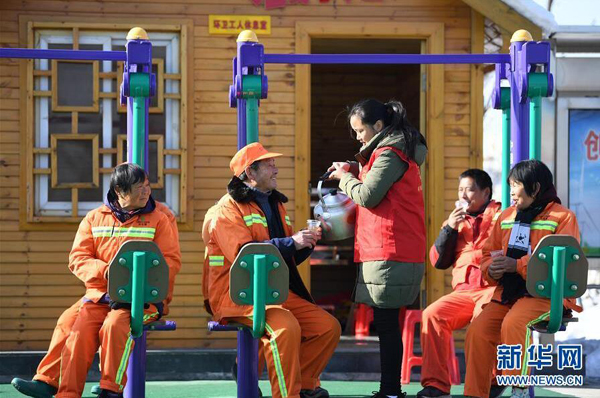 近日,安徽省肥西县上派镇及时开放辖区13个村居的志愿服务“爱心小屋”作为环卫工人休息点,为他们提供热水和保暖用品,送去寒冬里的温暖。
