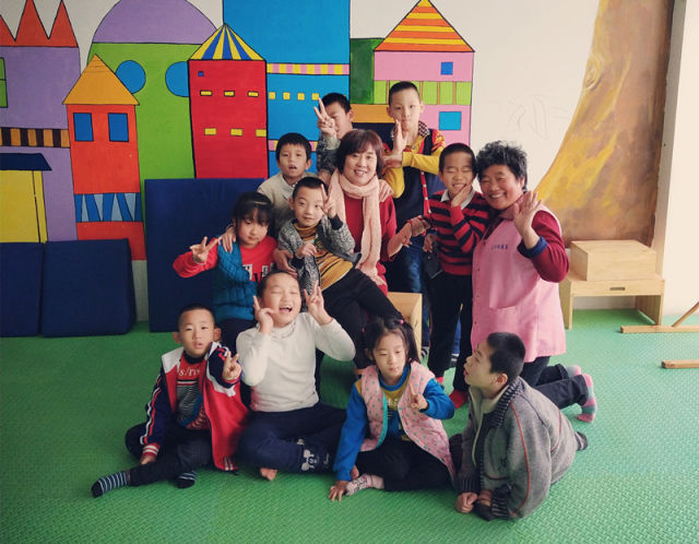 贾秀芳与康复中心的脑瘫患儿(2017年11月25日摄)