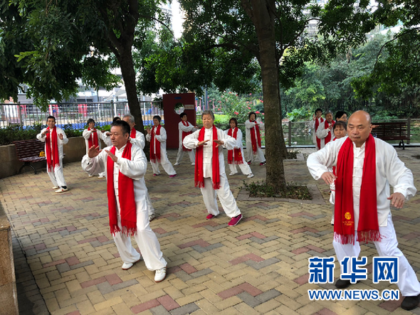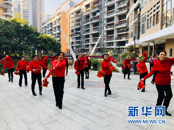 新华网深圳1月15日电(卓越)深圳的冬天没有冰天雪地,位于宝安区的海裕社区新岸线小区草木葱茏,凉风习习。小区广场上,十几位居民穿着耀眼的“中国红”舞衣,随着音乐欢快起舞;树荫下,大爷大妈们挥洒太极,行云流水。
