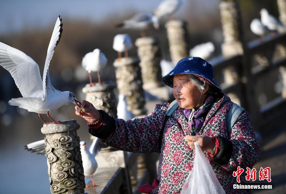 云南省昆明市有一位名叫崔凤仙的老人,30多年来一直自制窝窝头喂食红嘴鸥,市民亲切的称她为“海鸥奶奶”。“海鸥奶奶”今年已经88岁了,每天凌晨五点起床为红嘴鸥制作早餐,一公斤面粉加一公斤玉米面,做成16个热窝窝头,窝窝头做好后,立即坐公交车到昆明大观公园给红嘴鸥喂食。红嘴鸥一见到崔奶奶,就象撒娇的孩子围绕在老人身旁飞舞着争食,歇在老人头上,人鸥和谐的场景多年来让人称羡。不少市民和游客见此情景,纷纷拿出手机、照相机记录下这温馨的一幕。李进红 摄