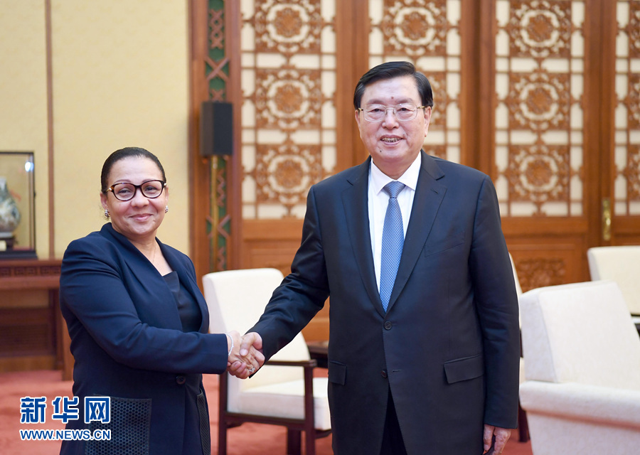 张德江会见加蓬参议长米勒布