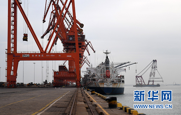 这是作业中的广西钦州港(1月10日摄)。新华社记者 陆波岸 摄