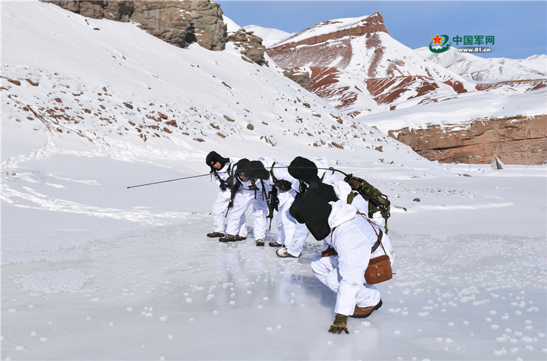 巡逻分队在冰面上“滑行”。杜麒麟 摄