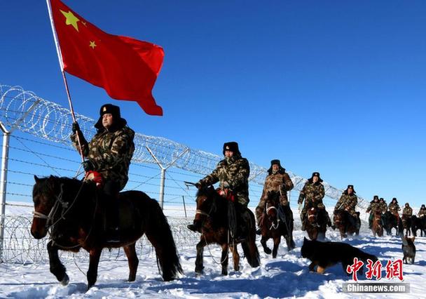 12月30日,驻守在祖国西北边陲的武警新疆阿勒泰边防支队托普铁热克边防派出所官兵,在中哈边境一线的雪原上巡逻踏查。王友波 摄