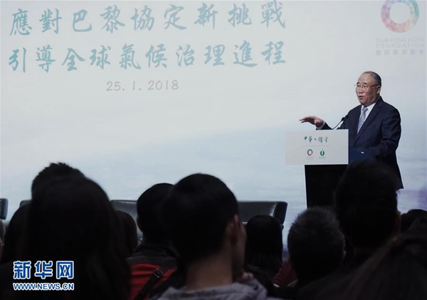 1月25日,中国气候变化事务特别代表解振华在香港表示,《巴黎协定》确定的全球绿色发展潮流不可逆转,而中国将继续努力在全球气候治理中扮演重要角色。新华社发(王申 摄)