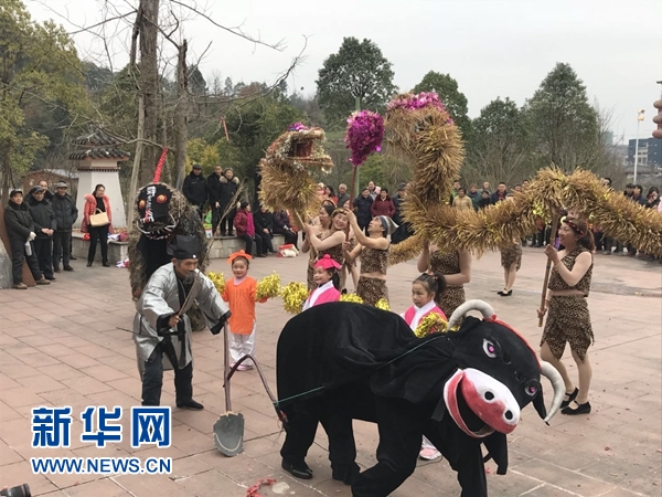 图为阆中春节文化主题公园中正在表演节目的村民 新华网 张世祥 摄