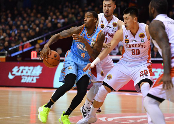 CBA常规赛第31轮1月25日先战三场,山东高速队在一场强强对话中战胜新疆广汇,继续强势表现;“副班长”八一富邦仍然没能走出泥潭,在输给南京同曦后,遭遇十连败;青岛国信双星则在四连败后尝到胜果,主场121:100大胜四川金强。图为新疆喀什古城队球员亚当斯(左一)在比赛中控球。