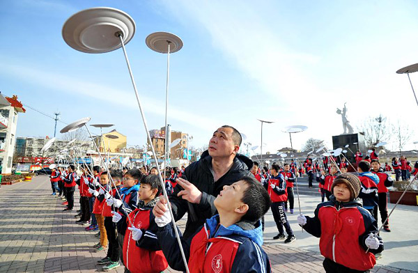 1月25日,河北省吴桥县东街小学的学生在练习转碟。河北省吴桥县是闻名世界的“杂技之乡”。近年来,该县全面推进“杂技文化进校园”工程,聘请杂技名家开发杂技特色校本课程,促进杂技文化的传承和弘扬。