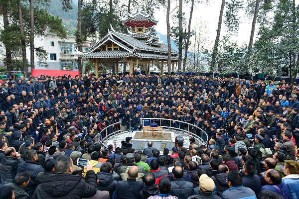 1月24日,人们在贵州省黔东南苗族侗族自治州剑河县观看斗画眉鸟比赛。当日,贵州省黔东南苗族侗族自治州剑河县举办“斗画眉迎新春”大赛,吸引了来自周边县市的斗鸟爱好者前来观看、参赛,大家欢聚一堂,喜迎新春佳节的到来。