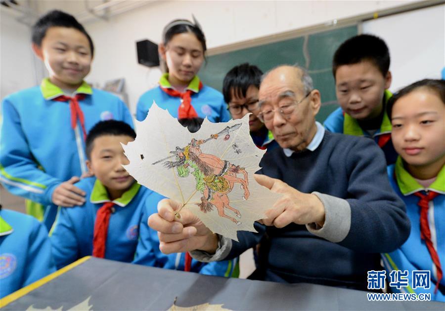 1月30日,邯郸市叶脉画传承人朱余尧向复兴区百花小学学生讲解叶脉画制作过程。当日,河北邯郸市复兴区百花小学举办叶脉画课外班,叶脉画传承人朱余尧向小学生展示叶脉画艺术魅力。学生们通过认识叶脉画,了解叶脉画,激发对传统文化的热情。新华社记者王晓摄