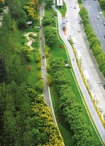 “一轴”指沿锦江从都江堰紫坪铺至双流黄龙溪总长200公里的锦江绿道;“两山”指沿龙门山东侧、长度约350公里的龙门山森林绿道,沿龙泉山西侧、长度约200公里的龙泉山森林绿道;“三环”分别指沿三环路总长100公里的熊猫绿道,依托环城生态带、主线总长200公里的锦城绿道,沿第二绕城高速路、总长约300公里的田园绿道。
