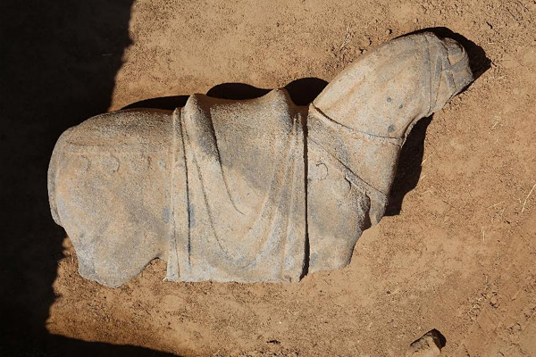 唐代宗元陵的神道石马残块(资料照片)。记者从陕西省考古研究院获悉,经过近一年的持续勘探发掘,唐代宗元陵取得唐陵大遗址保护项目的重要阶段性成果。考古工作者在唐代宗元陵发现的下宫1号建筑基址,是目前考古发现的保存最完整、面积最大的唐代陵园建筑基址,对研究、复原唐代的宫殿建筑具有重要意义。唐代宗元陵位于陕西省富平县庄里镇,依山为陵,气度非凡。