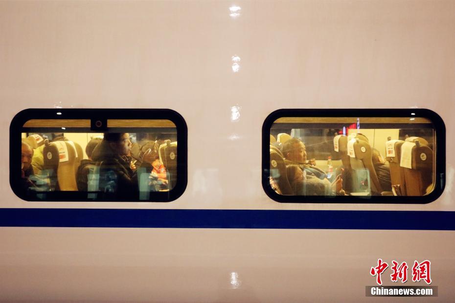 2月5日晚,在湖北宜昌火车东站,来自五湖四海的旅客乘坐火车返回家乡。在站台短暂停靠时,列车里的乘客有的低头看书、看手机,有的向窗外张望,小孩子们一起打闹嬉戏,小小的车厢充满了旅客回家的喜悦,也成为他们临时而温暖的“家”。中新社记者 黄余洋 摄