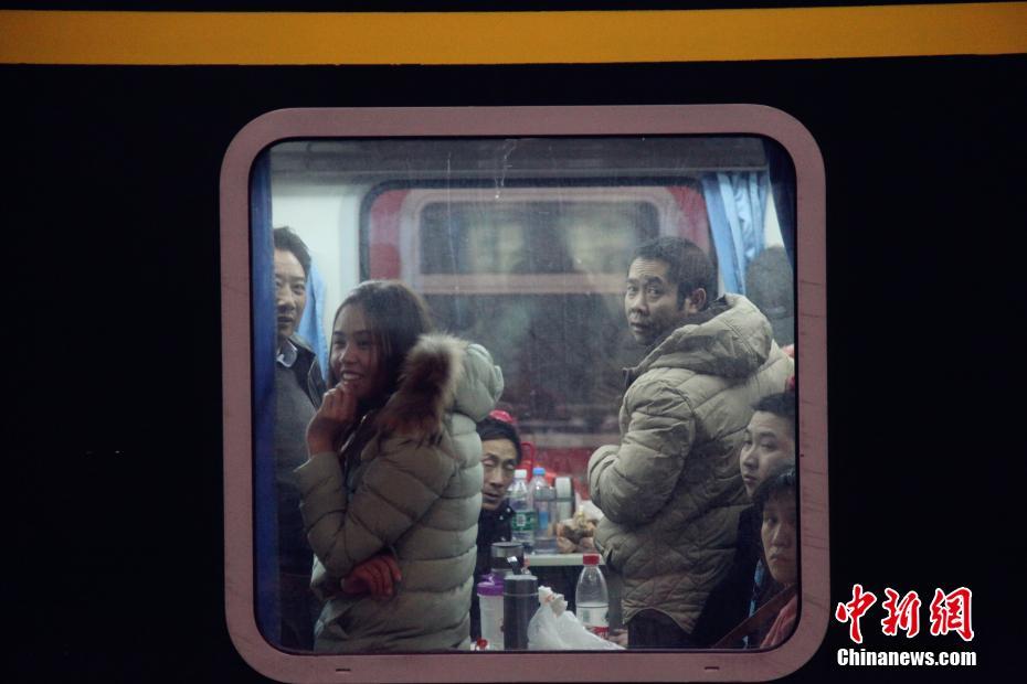 2月5日晚,在湖北宜昌火车东站,来自五湖四海的旅客乘坐火车返回家乡。在站台短暂停靠时,列车里的乘客有的低头看书、看手机,有的向窗外张望,小孩子们一起打闹嬉戏,小小的车厢充满了旅客回家的喜悦,也成为他们临时而温暖的“家”。中新社记者 黄余洋 摄