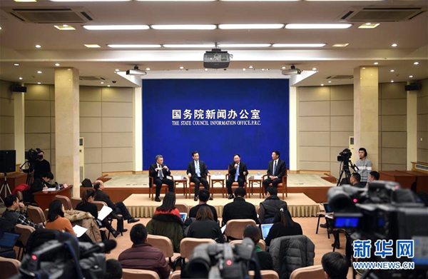 2月6日,国新办在北京国务院新闻办新闻发布厅举行中外记者见面会,请宁夏回族自治区银川市委常委、永宁县委书记钱克孝,浙江省湖州市人大常委会副主任、中共德清县委书记项乐民,贵州省遵义市政协副主席、湄潭县委书记魏在平围绕乡村振兴与中外记者见面交流。新华社记者 金良快 摄