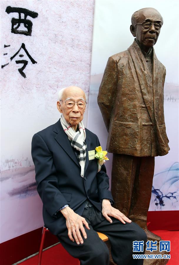 国学大师饶宗颐出席其铜像揭幕暨“艺聚西泠”展览开幕典礼(2012年12月14日摄)。新华社记者 李鹏 摄