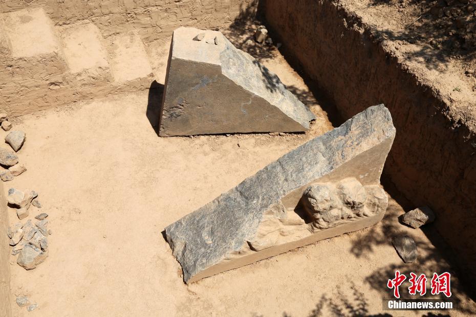 2月7日,陕西省考古研究院透露,考古人员对唐元陵的神道石刻及下宫遗址进行了考古发掘和清理,新出土鸵鸟等石刻27件,并发现两座大型建筑基址。图为残存的鸵鸟石刻。中新社记者 钟欣 摄