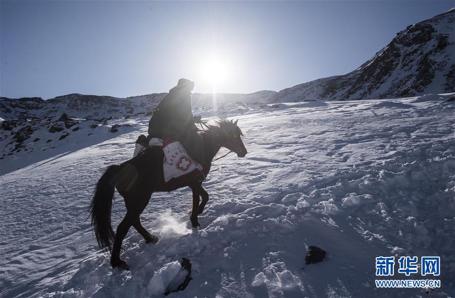 巡诊队医生叶力夏提纵马翻越乔拉克达坂(2017年12月15日摄)。 新华社记者 江文耀 摄