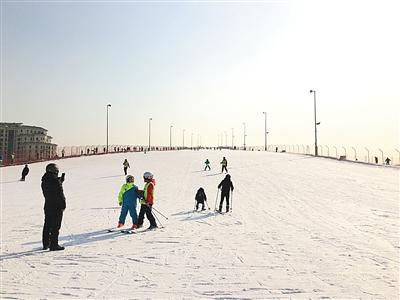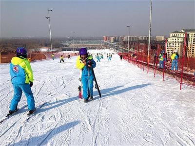2月6日下午,位于大兴区的龙熙滑雪场内,上百名滑雪者在此滑行。新京报记者注意到,许多滑雪初学者在雪道下方的缓冲区域内练习,一旁练习道上的滑雪者寥寥无几。“在哪儿都一样。”一名在缓冲区域雪道上逆行、自称没有任何滑雪基础的滑雪者称。