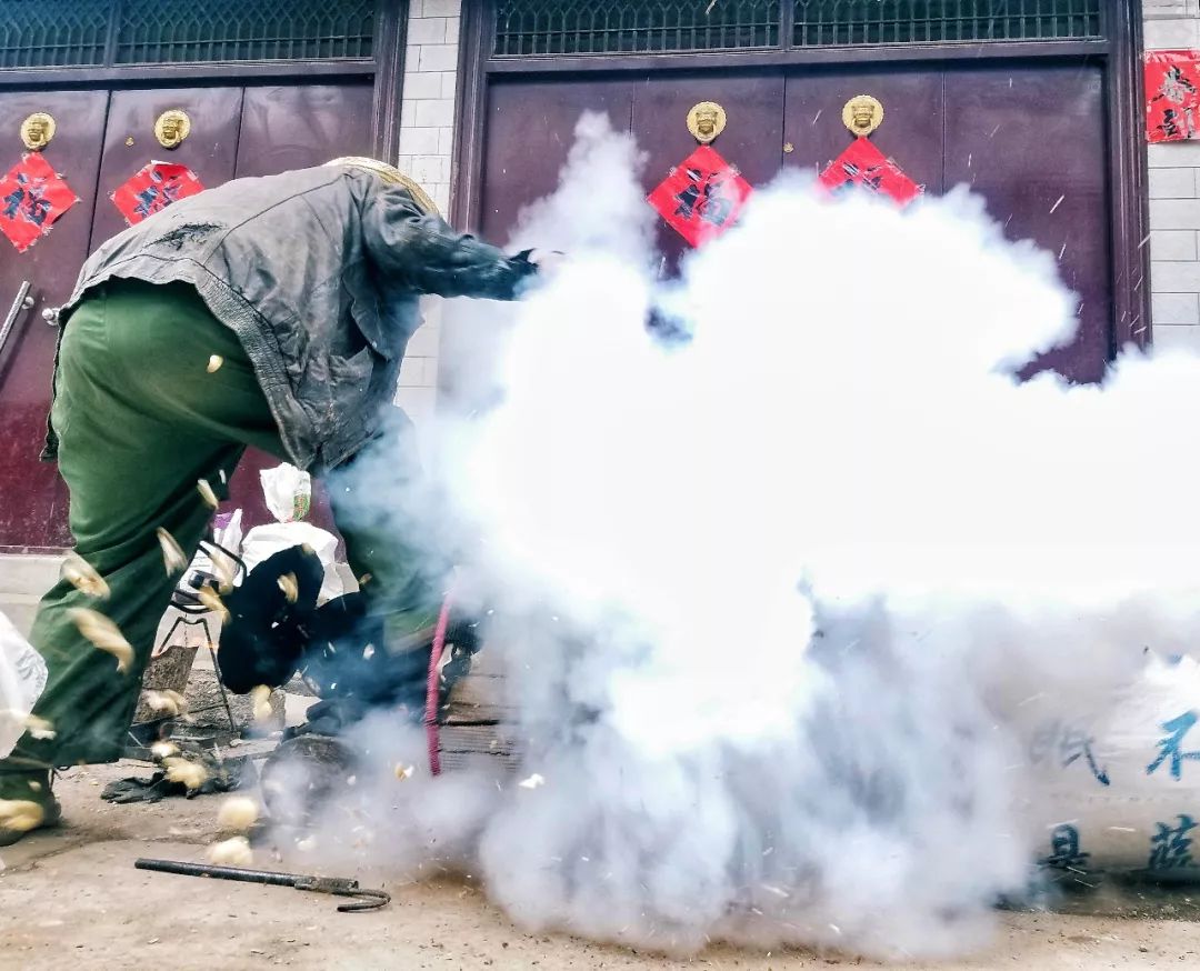 2018-01-18。河南三门峡。“嘭”的一声响,爆米花开锅了,仿佛回到了童年。伴随着那一团团的白烟,走过了一年又一年。刚子 摄