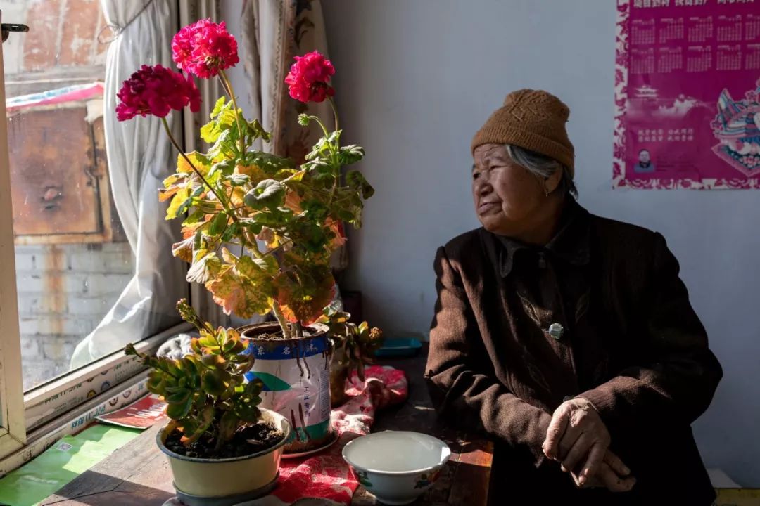 2018年1月24日。山西大同。老母亲站在窗前望着大门外,盼着孩子们早日归来。张伟 摄