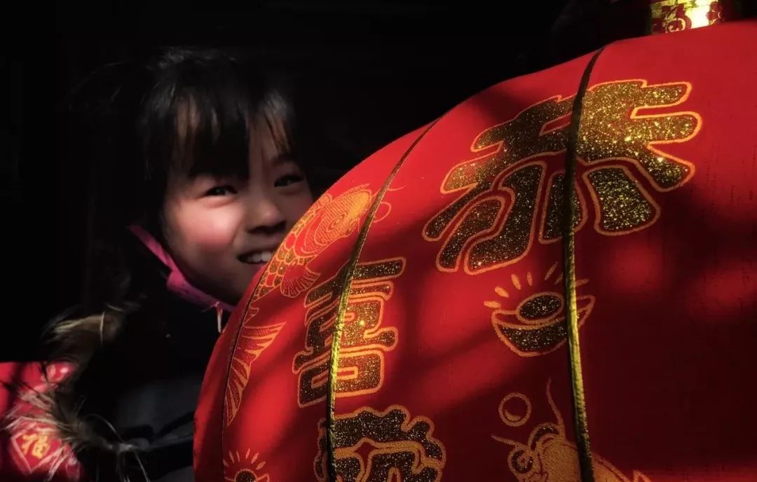 2018年1月31日。山西运城。小姑娘拿到大人带回的灯笼,喜笑颜开。中国美 摄