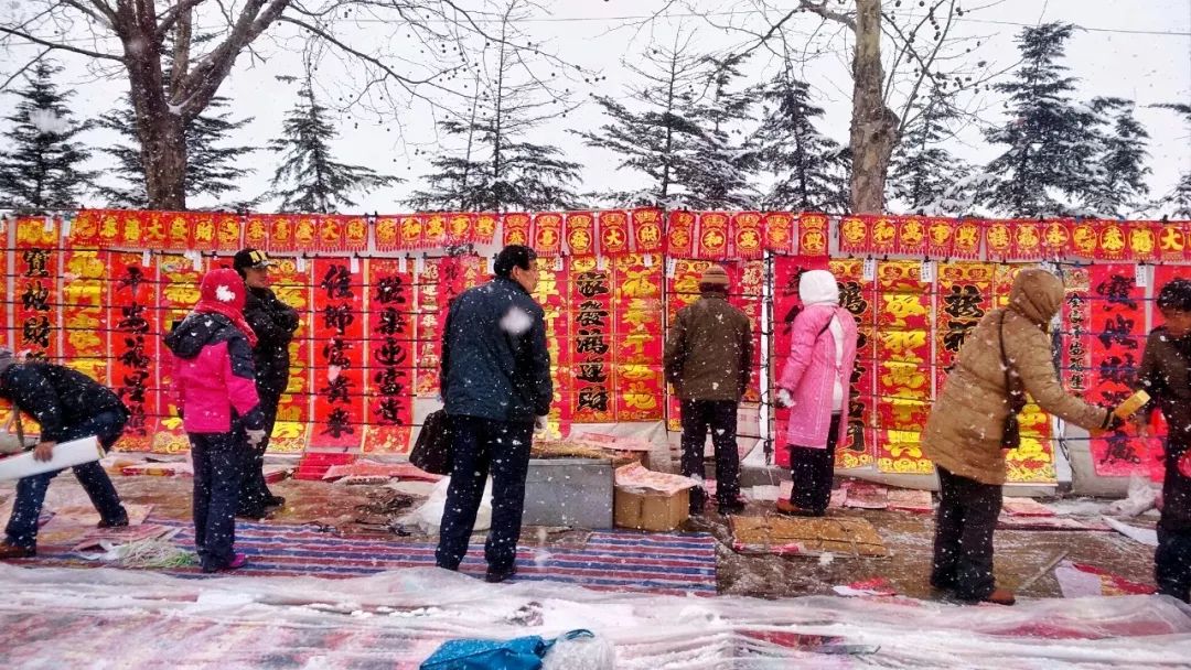 2018年1月16日。山东烟台。人们在雪中购买春联。总想为你唱支歌 摄