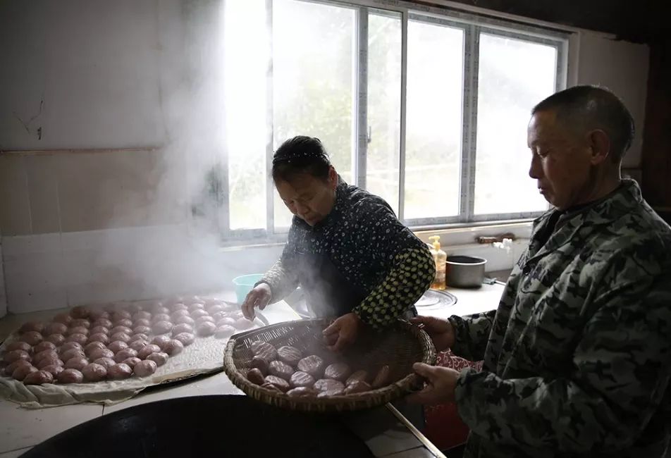 2018年2月13日。湖北咸丰。农历腊月二十八,小村炊烟四起,大家一大早就忙活起来,和面、烧水、喂柴、蒸上一锅高粱粑,寓意来年收成佳。记录 摄