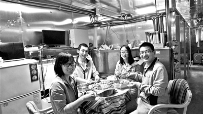 昨(15)日,北京航空航天大学“月宫一号”实验舱内,参加“月宫365”实验的4名志愿者用舱内自己种植的食材包了一顿饺子作为年夜饭,在封闭的实验舱内度过了一个特殊的新年。