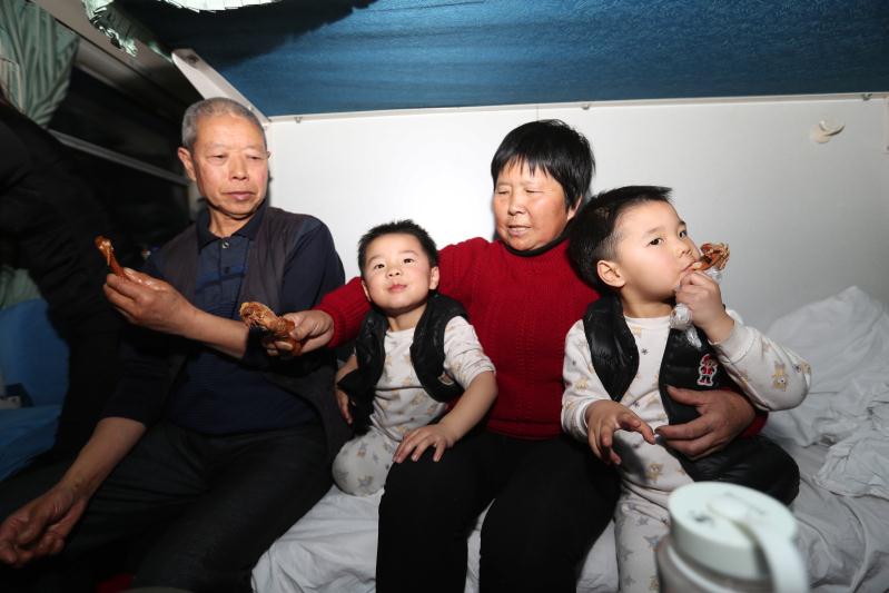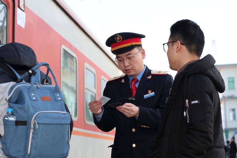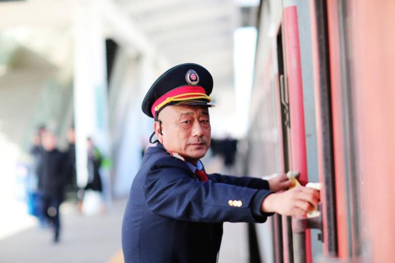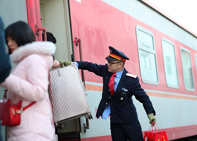 由中国铁路北京局集团有限公司石家庄货运中心担当的北京西至成都k4217/8次列车,来回运行89小时19分、4082公里,节前两趟56名乘务人员把5569名旅客平安送到家。