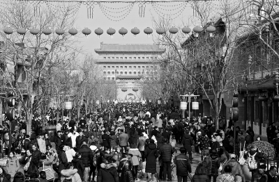 春节假期,京城旅游再迎高峰,前门大街人潮如织。摄影 庞铮铮