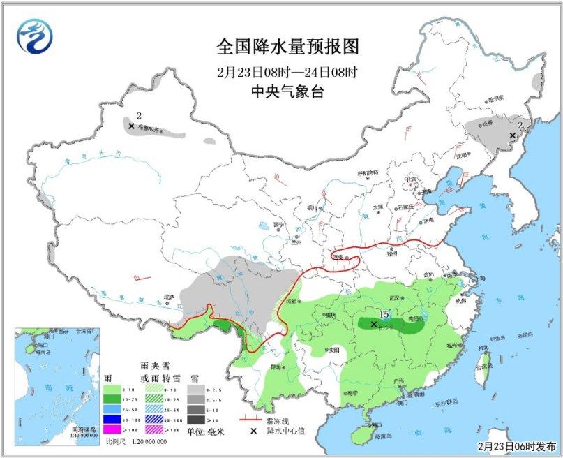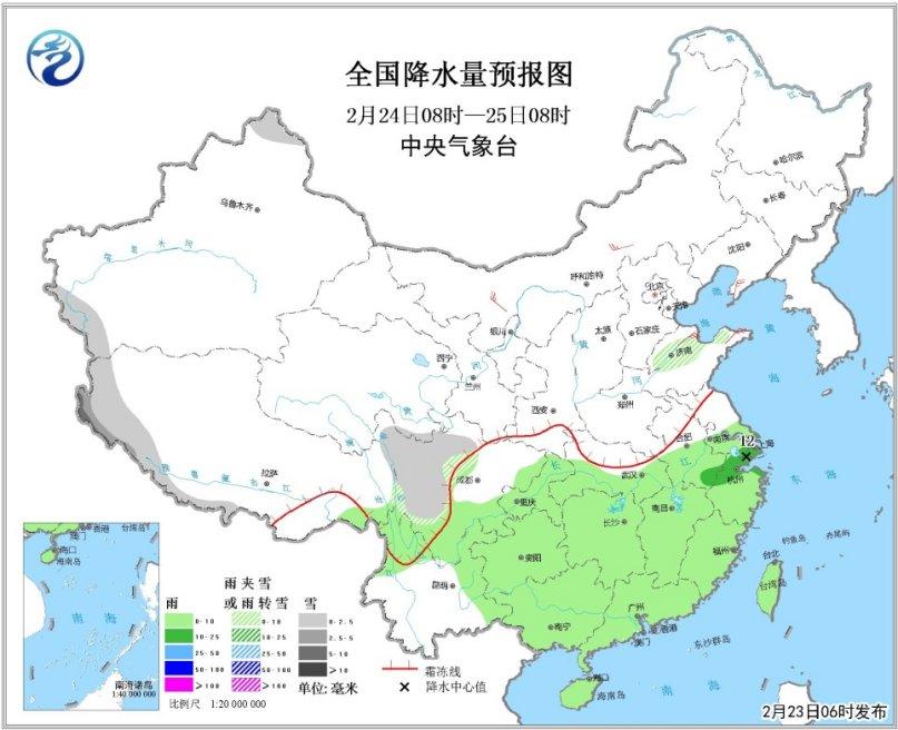 23日夜间至24日,西南地区东部、江汉南部、江淮南部、江南、华南等地将有一次小到中雨的降水过程。