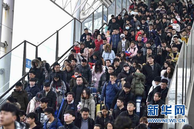 铁路春运迎来返程客流高峰。2月20日,旅客在安徽亳州火车站进站乘车。新华社发(刘勤利 摄)