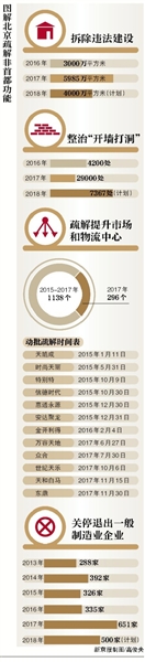 过去两年,北京市拆除违法建设约9000万平方米,整治开墙打洞3.3万余处,疏解提升市场和物流中心约450个,关停退出一般制造业企业近千家。