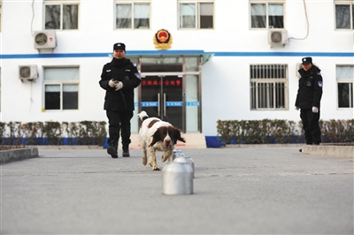 翩翩是一只搜毒犬。2月22日,北京铁路公安处警犬工作队,它正在进行模拟搜毒训练。