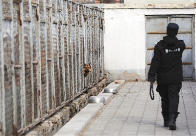 回到犬舍的警犬皮特向外张望,等待高永丽来关闭犬舍。