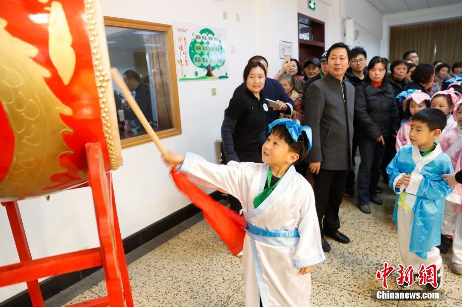 随着“唐宋诗词热”、“国学热”等现象的出现,优秀传统文化与当代教育再次“融”为一体。2月26日,上海市天山第二小学为在校的一年级学童举行“开笔礼”,为儿童启蒙教育“破蒙”。